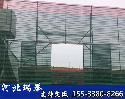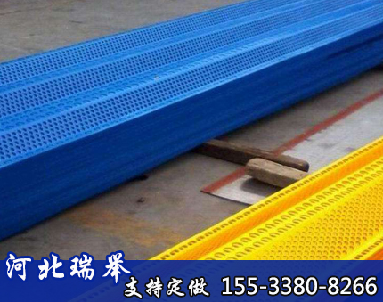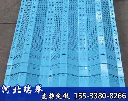 (3)挡风板安装:挡风抑尘板采用无机非金属材料模压*次成型。使用寿命15~20年。使用环境温度:-40℃至+80℃,连接采用螺钉和压板固定。挡风抑尘扳的具体尺寸、弯曲度、开孔率应根据堆场的实际情况进行设计。